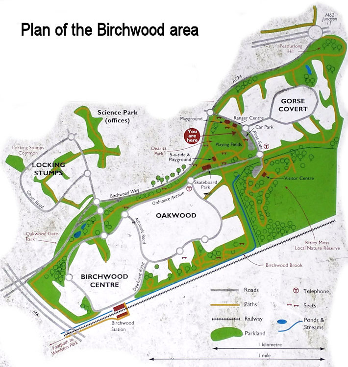 Birchwood is divided into four residential estates: Gorse Covert, Oakwood, Locking Stumps and Heathfield. Read more about these in their own sections later. Birchwood Shopping Mall is the main area for shopping along Dewhurst Road. The name of the road comes from Richard Dewhurst who purchased the Risley estate in 1853. The area of Risley now occupied by Birchwood was once part of Culcheth.