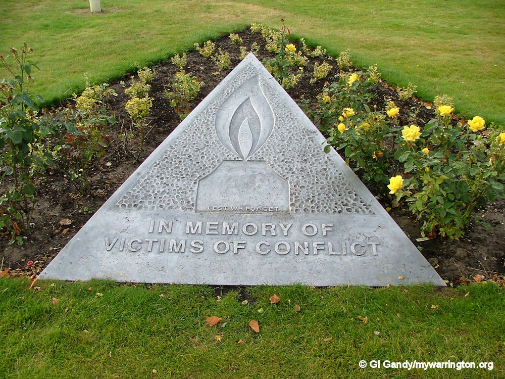 VICTIMS of conflicts around the world are remembered in Birchwood Memorial Garden outside Birchwood Shopping Centre. The original memorial, designed by Birchwood artists Peter Oakley and Greg Fuller, was unveiled in 2002. Since then a memorial garden has been created around it with seating for those wishing to rest their legs and pay their respects.
