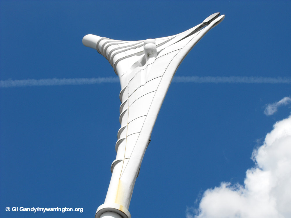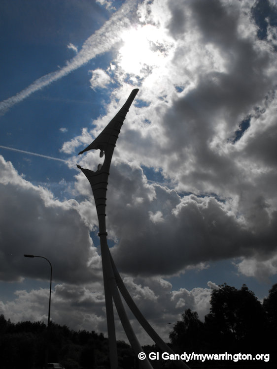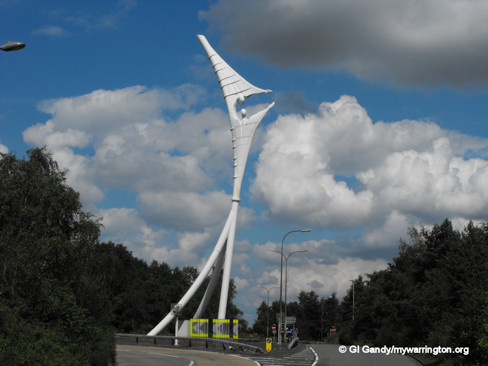 Encounter, A.K.A. the Angel of Birchwood. Designed by Liverpool artist Stephen Broadbent, it was erected close to junction 11 of the M62 on 13 October 2002.