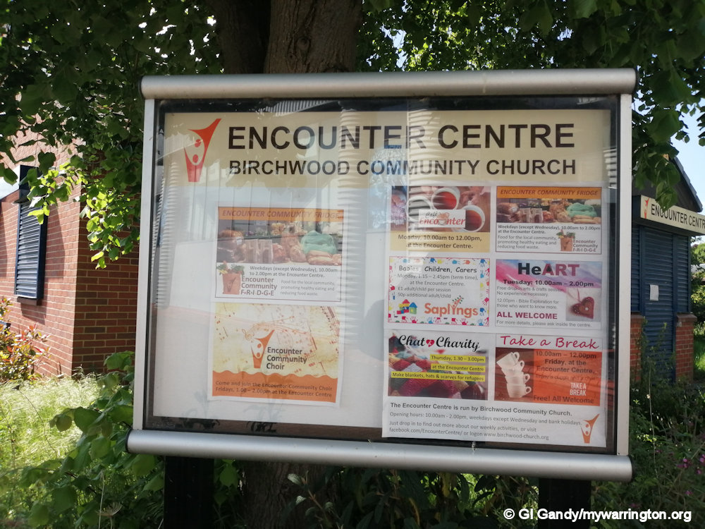 The Encounter Centre was occupied by Birchwood Community Church of the same name. It was later demolished and a children’s play area was built on the site. The church services now take place in the Performing Arts Centre at Birchwood Community High School. A new community centre, again called the Encounter Centre, occupies land close to the site of the original Encounter Centre building.