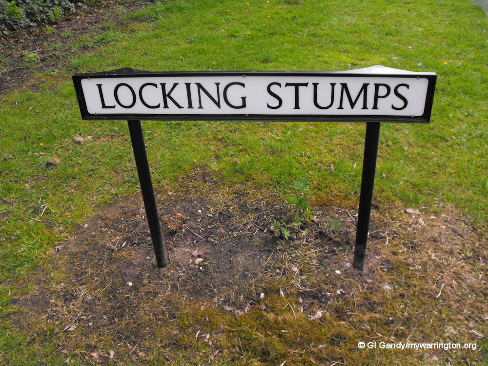 Locking Stumps, is the furthest west of the districts of Birchwood. It has a shop, public house (The Turf and Feather), takeaway shop, primary school (Locking Stumps Community Primary School), and the Thomas Risley Church, all built on the site of the former Royal Ordnance Factory, ROF Risley.