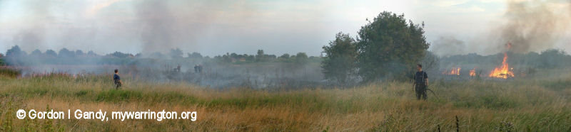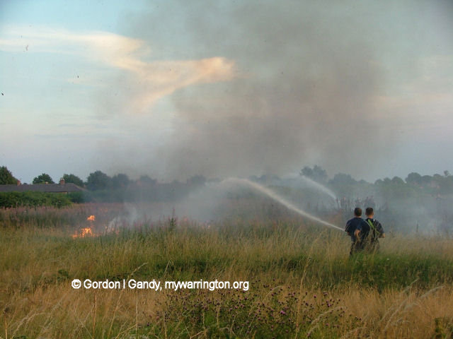 The fire, which eye-witnesses say was started by four youths, scorched waste ground off Hawleys Lane, Dallam, between the two churches just after 8.00pm on 25 July 2006. Due to the direction of the wind at the time locals feared the flames would spread to St Anselm’s Church and the nearby bungalows.