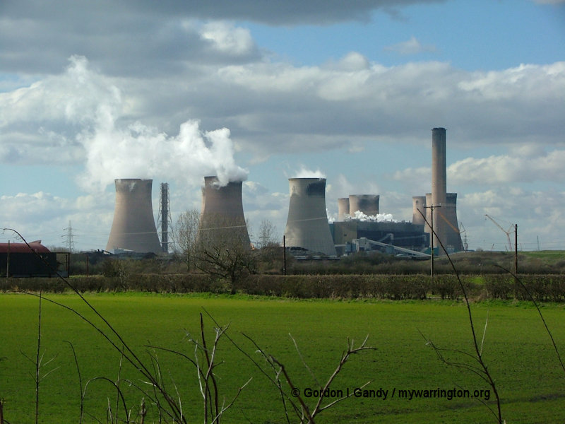 Fifty firefighters were called to Fiddlers Ferry Power Station just after 10am on Thursday 19 April 2007, when a blaze started in a roof section of the main turbine hall, 150 feet above the ground. It caught fire when bitumen being used for repairs ignited.