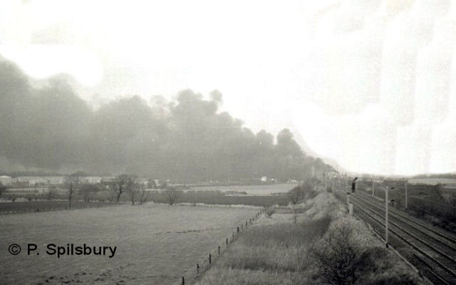 A train travelling from Stanlow to Bishopsbrigg on 3 March 1983 with 850 tons of gas oil in 14 tankers were crossing from the Chester line to the W.C.M.L. when 8 tankers derailed and caught fire at Moore. Fortunately there were no casualties.
