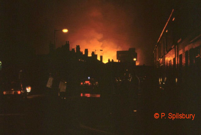 I found all the streets around Howley Lane sealed off, so from a distance I watched the firemen at the tops of their ladders, silhouetted against the flames. What a spectacular sight. Never did find out what it was that burned down though.