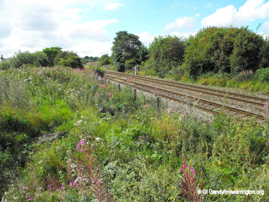 The station lay on the L&MR’s line between St Helens Junction and Earlestown stations and was located just east of the point where the railway line passed over Penkford Lane (B5204). A short access road from Penkford Lane links to the main station building on the south side of the line. The station was initially a request stop manned by a railway policeman in charge of the level-crossing. His quarters were in a building north of the line.