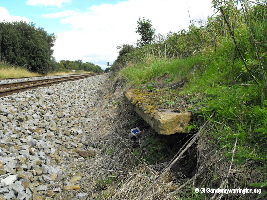The L&NWR’s passenger and goods traffic from Collins Green was taken over by the London Midland and Scottish Railway (L&MSR) on 1 January 1923. The L&MSR was nationalised within British Railways on 1 January 1948. Collins Green station was closed on 2 April 1951. The site of the station building is now occupied by Superclean Sandblasting. The owner of Superclean Sandblasting informed me the slabs used for the railway platform are made of Yorkshire stone. There are still some visible just over his fence where the original platforms once lay.