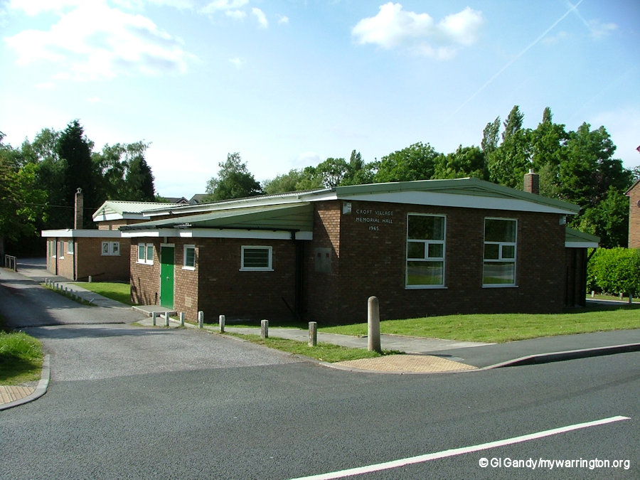 The foundation stone for Croft Memorial Hall was laid by Joseph E. Birchall on 26 April 1965. The Horse Shoe pub is in the centre of the village, with The General Elliot, dating back to at least 1824, on Lord Street on the western edge of the village. This is the area described as Croft Heath on the maps. A third pub, the Plough Inn, is located along Heath Lane. The village no longer has a post office – this closed in 2004 and was converted into a private house.