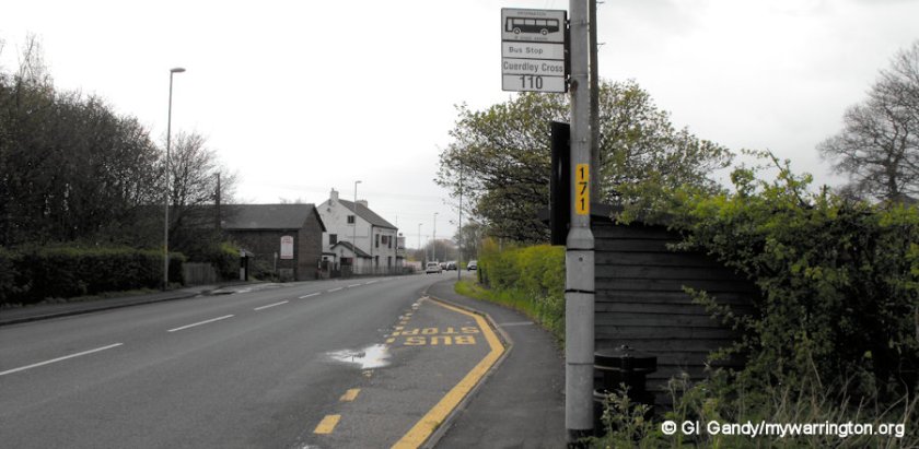 Part of the GC&MJR railway ran along the western boundary of Cuerdley to link up with the Cheshire Lines Committee railway to the north of the district. it travelled under Dan Road bridge which nowadays carries the eastbound traffic from Widnes to Warrington via Cuerdley.