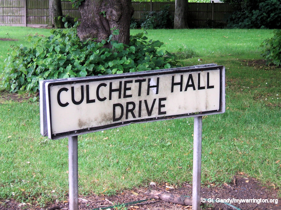 The lordship of the manor of Culcheth and Culcheth Hall were latterly owned by the Withington family. Withington Avenue is one of the modern street names in the village and runs parallel to Culcheth Hall Drive. Culcheth Hall was demolished after World War II and the estate has been developed as residential housing — Culcheth Hall Drive — by Adam Lythgoe (Estates) Ltd.