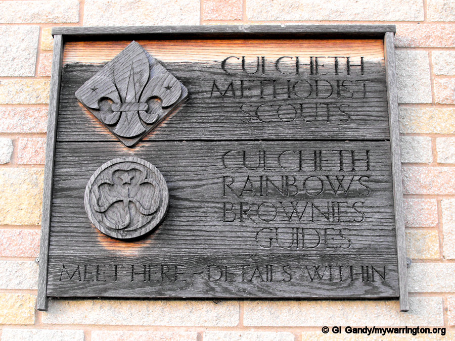 The local Roman Catholic church is also outside the village Culcheth Methodist Church is now home to the old bell from Culcheth Hall chapel, the squire’s private Catholic chapel, which has passed through the other churches to Culcheth Methodist Church for safekeeping and is in regular use as it is rung to announce services and continuation of worship in many forms in the village.