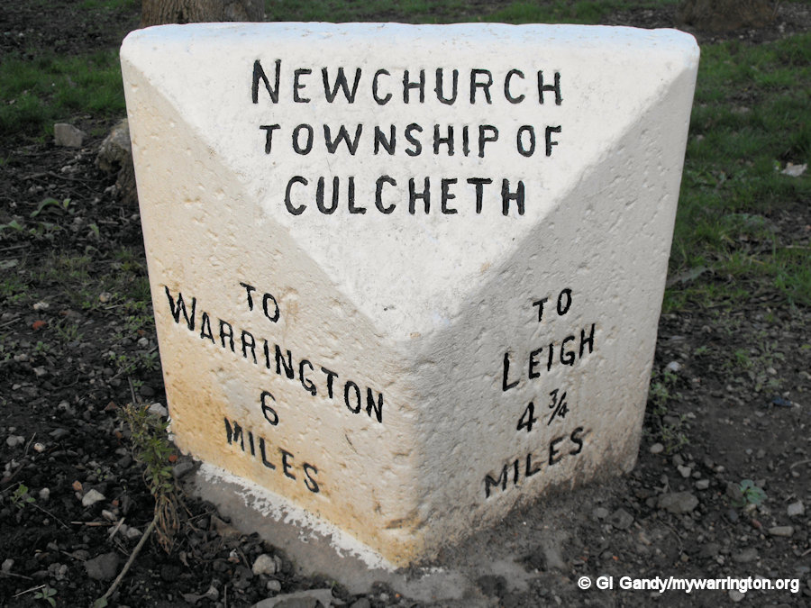 NEWCHURCH in Culcheth village was originally a parish in the union of Leigh, hundred of West Derby, S. division of Lancashire, 4 miles south by west of Leigh, and 6 north by east from Warrington.