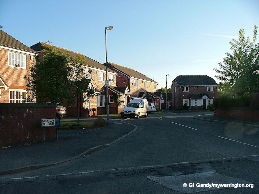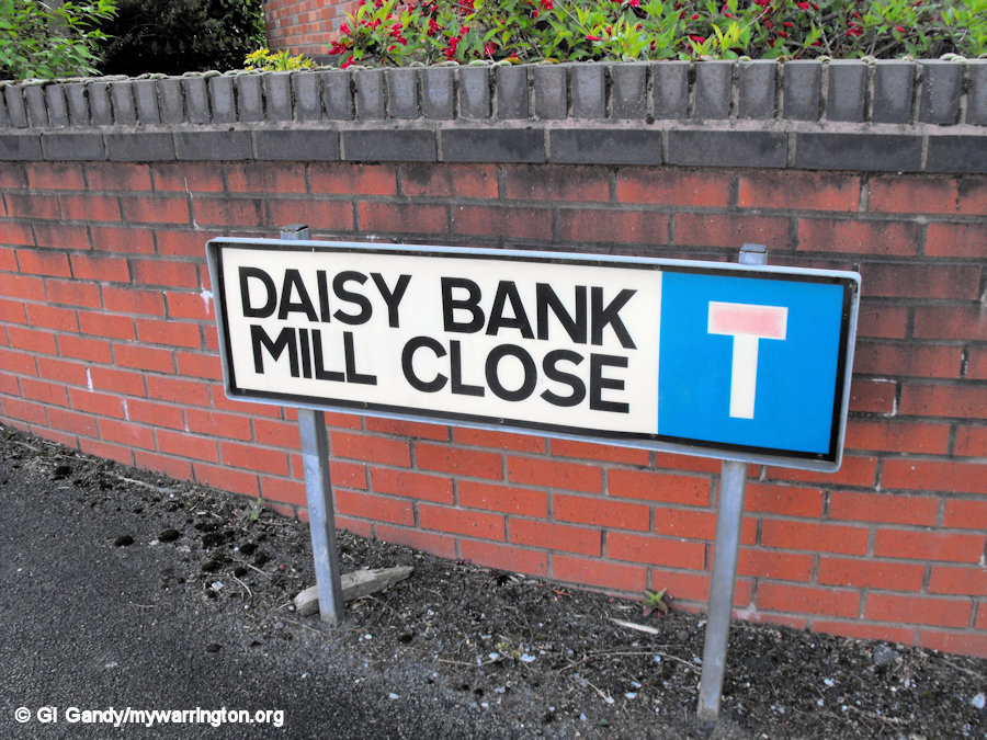 Culcheth had its own cotton mill, Daisy Bank Mill, originally called Clayton Mill (see Rosemary Keery’s book Historic Culcheth, The Story of a Village) which is remembered in the street name of Daisy Bank Mill Close.