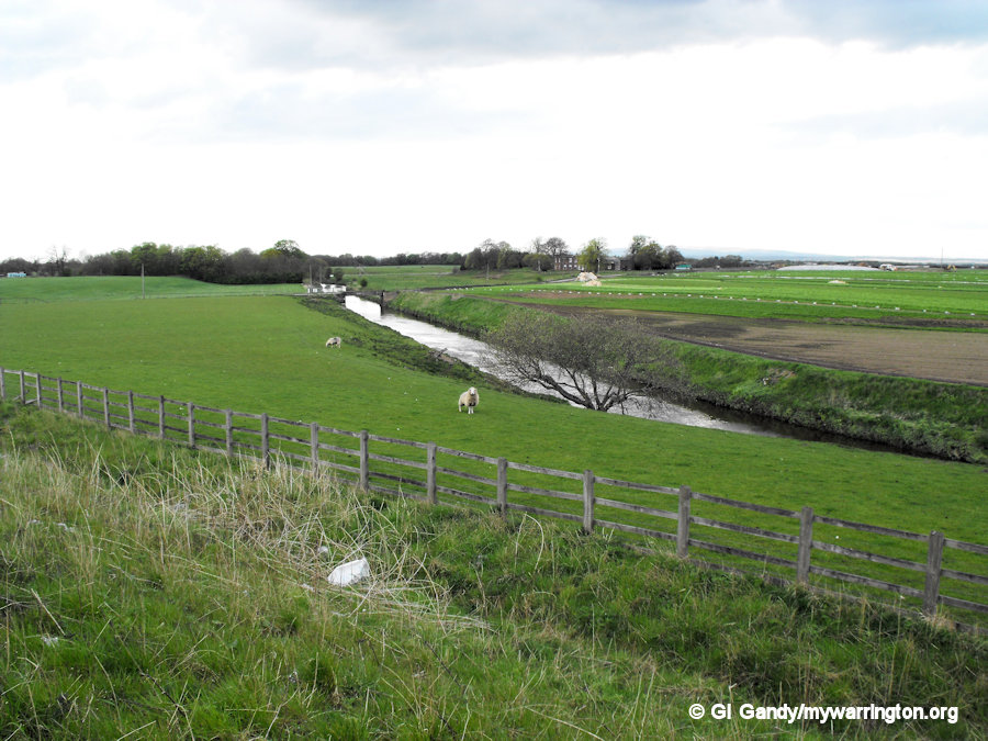 The Glaze Brook, also known as the River Glaze, marks the eastern boundary between Culcheth and Glazebrook. It is 22 miles (35 km) long and its main tributaries are the Astley, Bedford, Hey, Pennington, Shaw and Westleigh Brooks. Glaze Brook originates at the confluence of Pennington Brook and Moss Brook, north of Hawkhurst Bridge.[3] After picking up the waters of Bedford Brook, which runs southward from Leigh and the Black or Moss Brook coming west from Worsley via Chat Moss, the brook turns southward, ultimately draining into the River Mersey section of the Manchester Ship Canal near Cadishead.