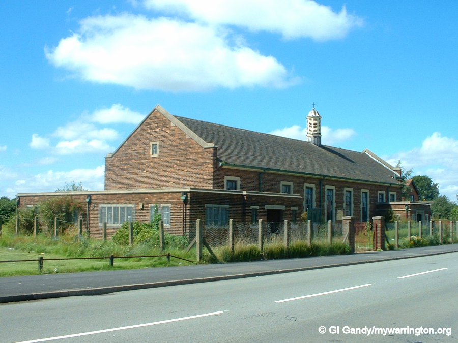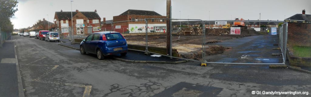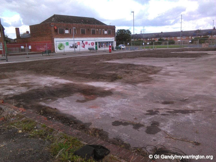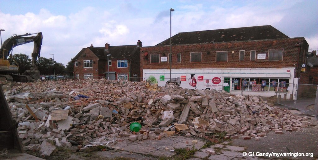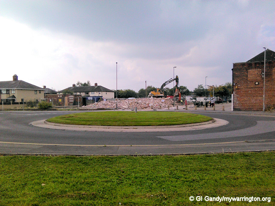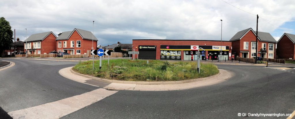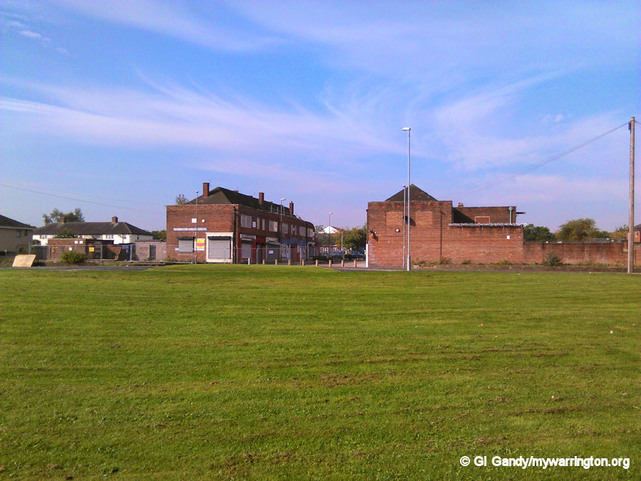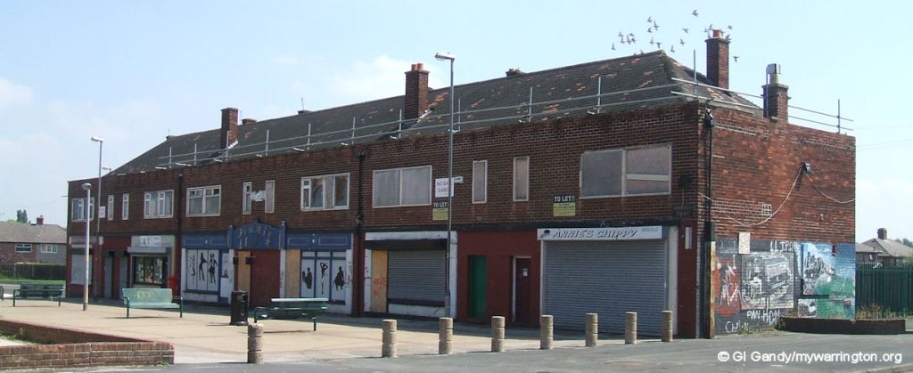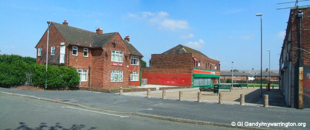 There was a cake shop, Renshaw’s hardware shop, a post office, Beswick’s grocery shop, Condliffe’s hairdresser’s and Mulhall’s chip shop, all housed in a row of six shops opposite the Co-op, which later became a Spar and later still a Nisa supermarket incorporating the post office. In more recent times there was Warrington Angling Centre (in the former cake shop by the roundabout).