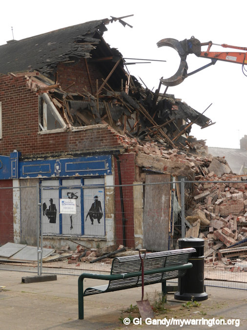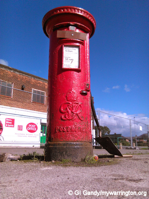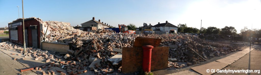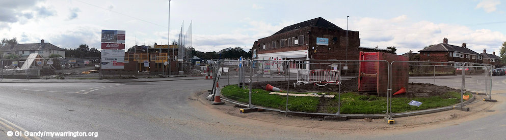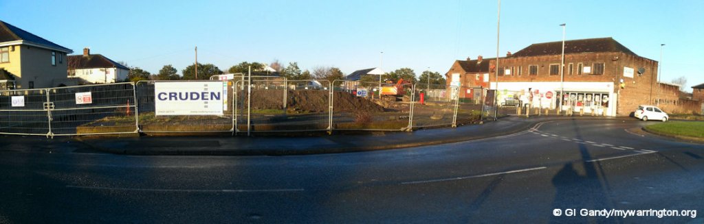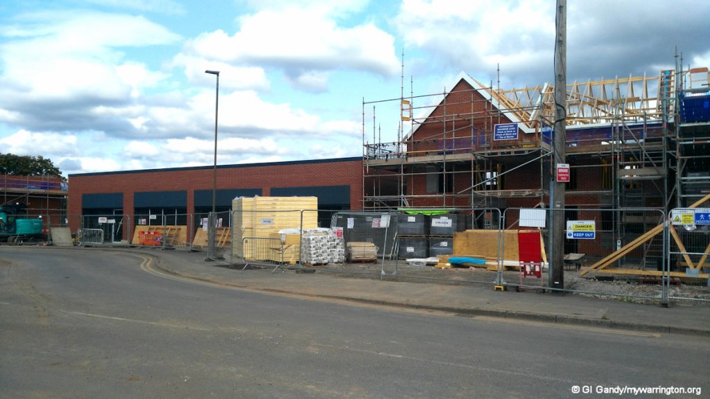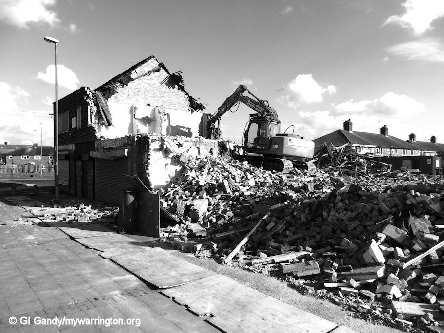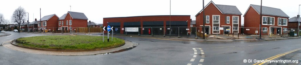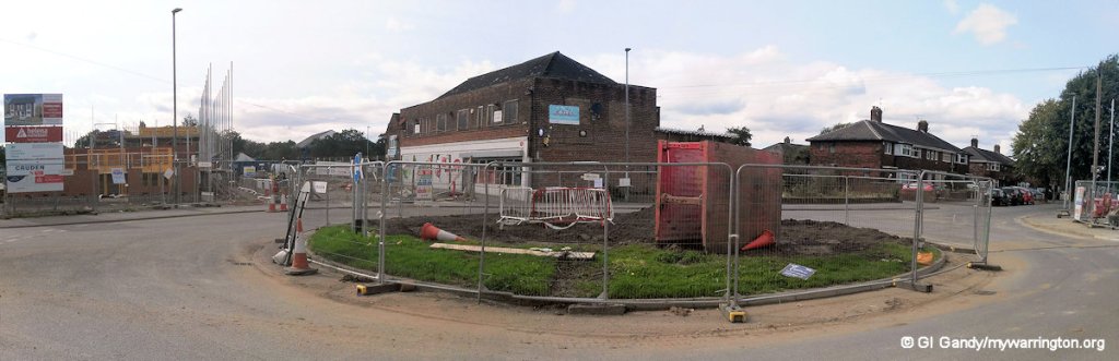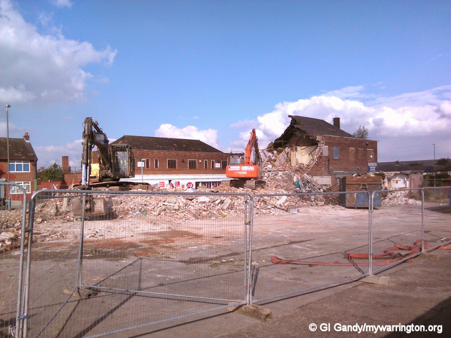 There was a cake shop, Renshaw’s hardware shop, a post office, Beswick’s grocery shop, Condliffe’s hairdresser’s and Mulhall’s chip shop, all housed in a row of six shops opposite the Co-op, which later became a Spar and later still a Nisa supermarket incorporating the post office. In more recent times there was Warrington Angling Centre (in the former cake shop by the roundabout).