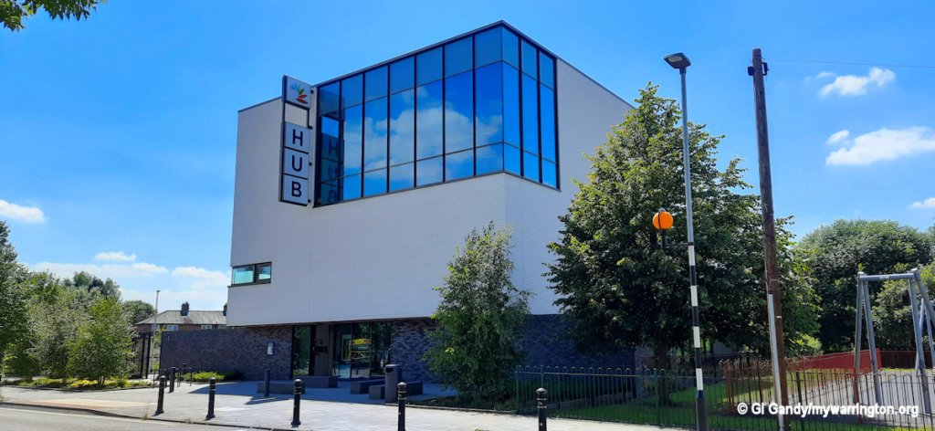 The £4.3 million hub on Longshaw Street was completed in June 2021 and officially opened on 15 November 2021. My photos here are from 20 Jun 2024 when the building in use.