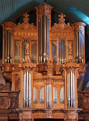 Organ by Thomas Dallam II at Guimiliau (1677). image by Tango7174 and used under Creative Commons licensing Wikipedia.org
