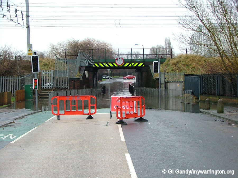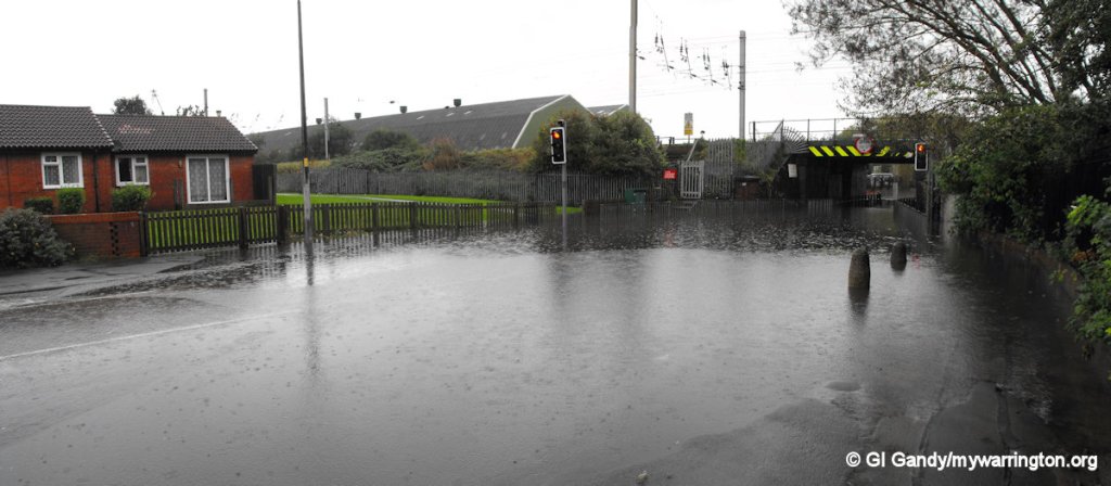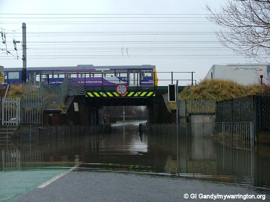 The fourth image is our old friend Hawleys Lane bridge. I say that light-heartedly, but there was a serious point about the bridge being flooded. There have been instances where students attending Winwick Road college or Beamont High School have climbed over the fence to cross over the railway to save them going all the way round. mywarrington would definitely not recommend that practice. Thankfully there were no injuries that I am aware of and the railway company later improved the fencing on both sides of the bridge.