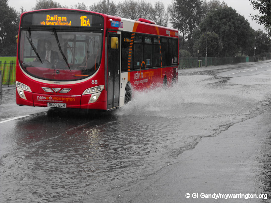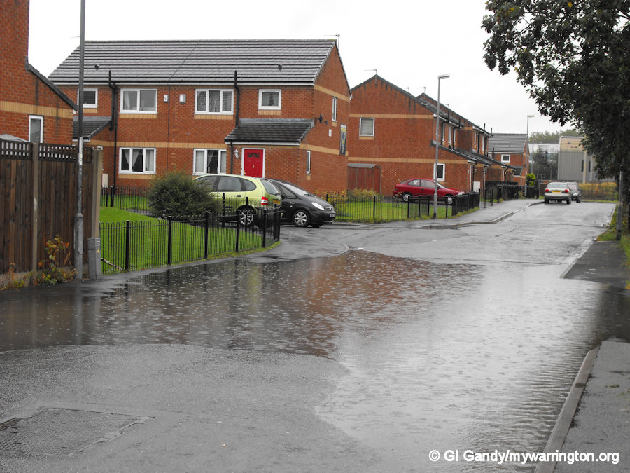 Questions have always been asked as to the cause of the flooding, including the historical lie of the land and how often the drains are cleaned out. One resident pointed out that further down Hawleys Lane past the railway bridge there is no flooding in Eddie Stobart’s yard because he has a large tree which soaks up water. One solution, which seemed to work in the beginning, was the construction of a new pumping station at Bewsey to take away excess water by pumping it into the Sankey Canal. But when that became a problem too some people put it down to that old chestnut called global warming.