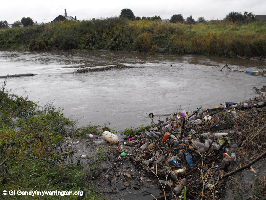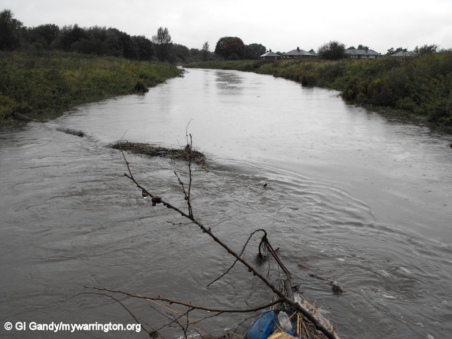 In the 2010 flooding, not only were the Hawleys Lane/Tavlin Avenue and Sankey Canal areas affected, but Longshaw Stret by St Mark’s Church too. We can see the effect in the following photos, including environmental issues with the rubbish in the Sankey Brook being washed up at the bridge near Bewsey Meadows. Shame on the people who throw their waste into our waterways. The photos were taken on 25 September 2012.