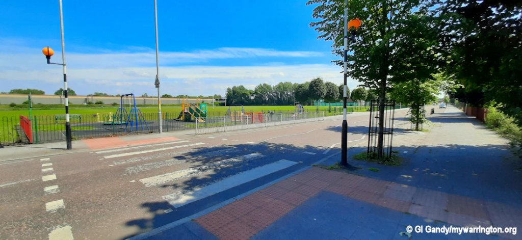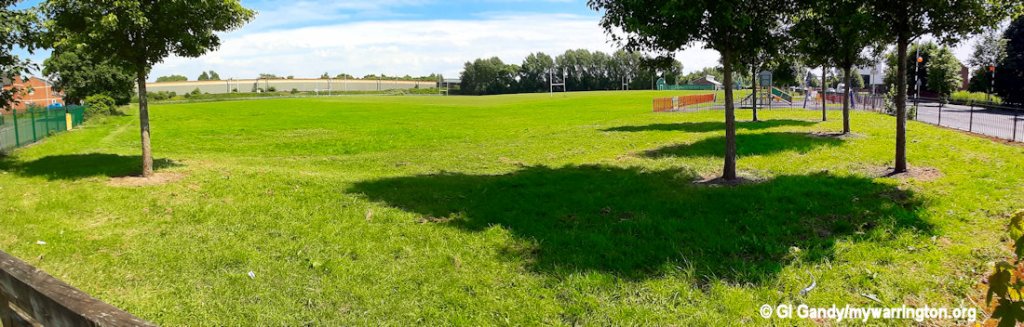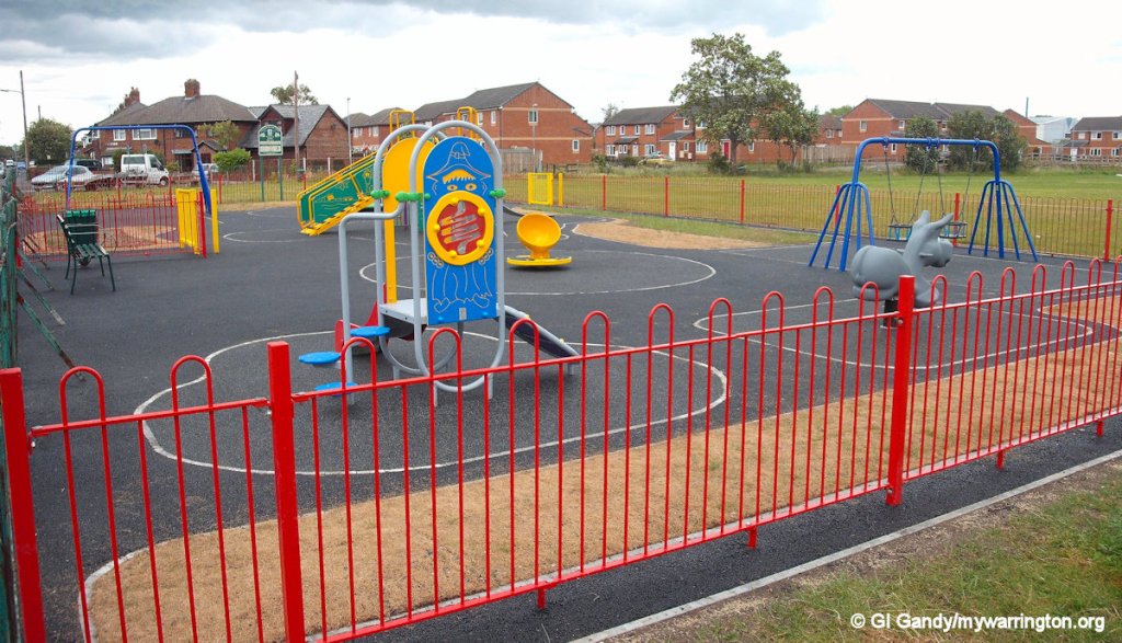A plan to sell off the playing field for a housing development threatened the park in 2012, but the playing field is the only green space in the area. Yes, there is Bewsey Meadows for nature walks, but nowhere to play sports. The plan was to relocate the children’s play area onto land between the two churches and Bewsey Meadow. The idea was later dropped, although the play area was eventually created.