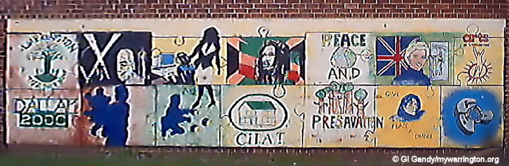 The following series of photos show how an artist brought back the memories of industry and community life in and a round Dallam from times gone by. The photos were taken in 20 November 2001 as part of my walkabout and can be viewed as a manual slideshow. I will display the photos first, then continue with the story.