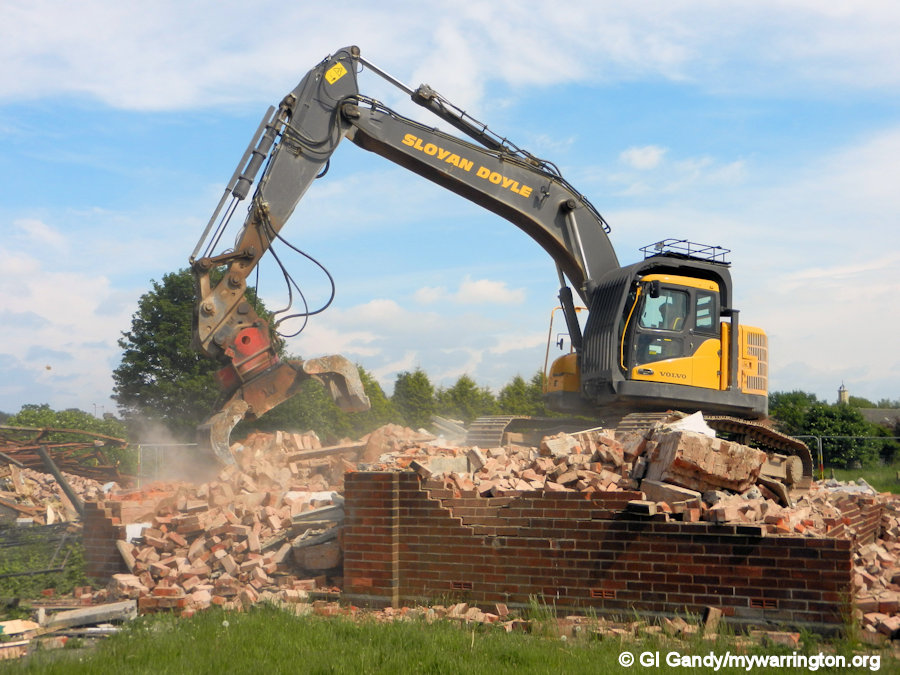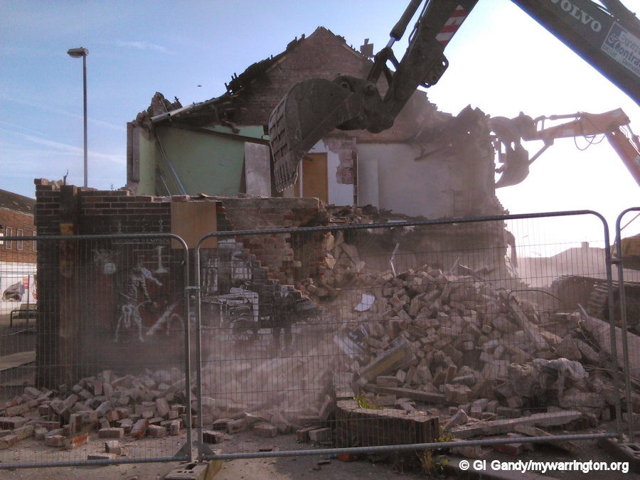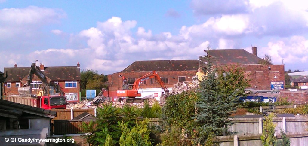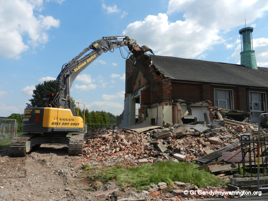 St Anselm’s in Dallam was linked to St Alban’s church on Bewsey Street and the priest there served both churches. Eventually it was decided to concentrate services at St Alban’s only and the Hawleys Lane site was decommissioned. Demolition began on 3 April 2013 and was completed on 5 June 2013. The land was sold off for housebuilding.