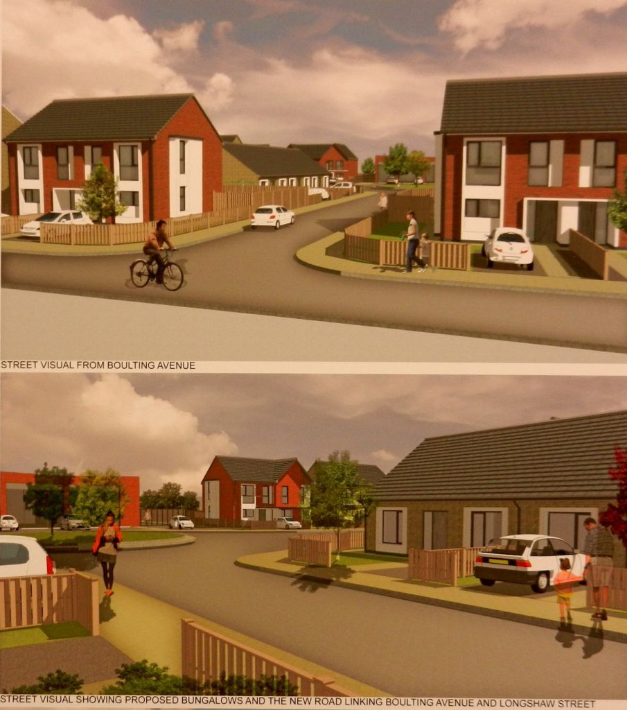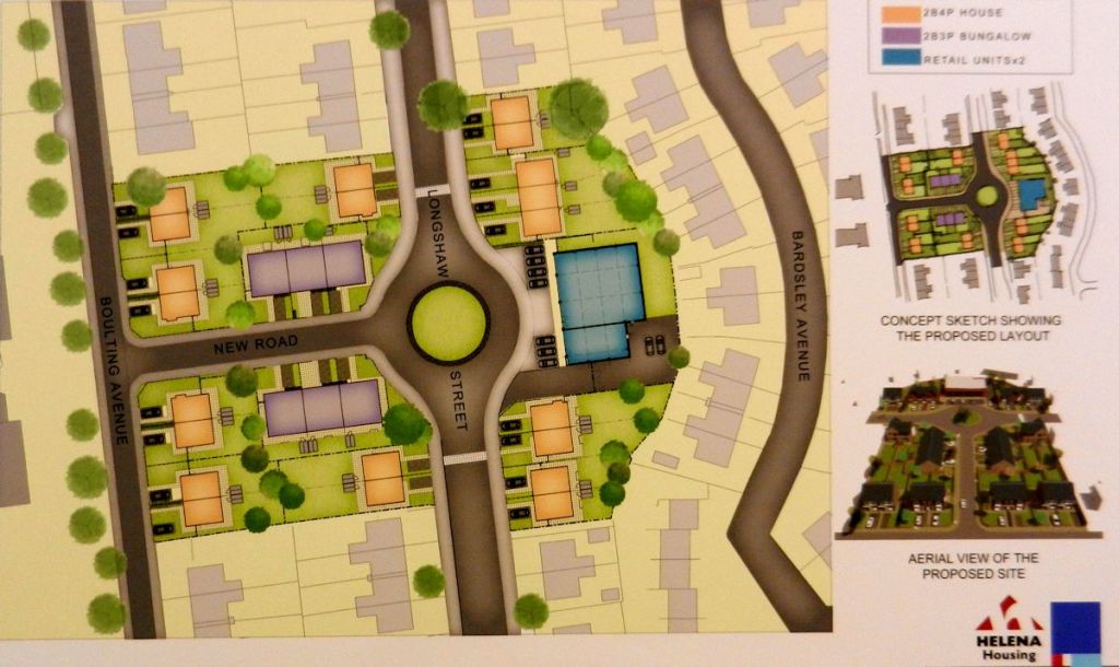 In 2015 Warrington Borough Council held a public exhibition on plans to redevelop the sites of Harrison Square and the Harrison Centre on Boulting Avenue with houses for rent. There was also a plan to build a community hub on the land once occupied by Warrington Transport club on Longshaw Street. Community House on Harrison Square, which started out as a children’s home, would be demolished and the Nisa shop would be moved into a new building on Longshaw Street once occupied by the flats that were demolished in 2004.