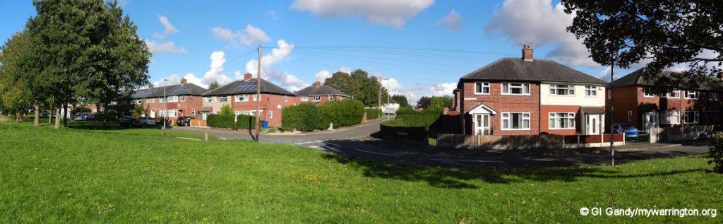 The houses forming the triangle at the centre of the image are Southworth Avenue, Molyneux Avenue and Reid Avenue, which were part of the Bewsey Garden Suburbs programme from 1928.