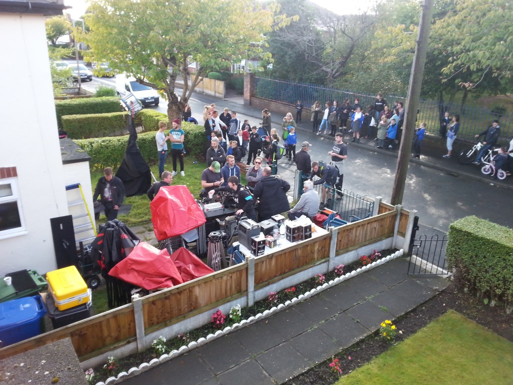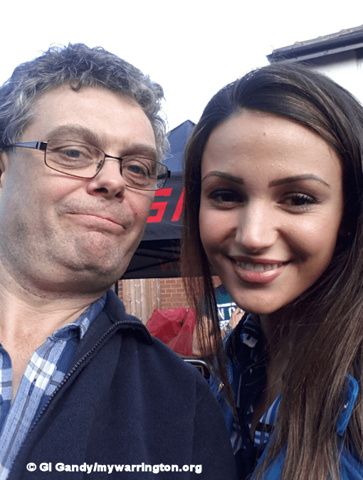Ordinary Lies is a BBC TV drama series that was first broadcast on 17 March 2015. The six-part first series, written by Danny Brocklehurst, is set in a car showroom in Warrington employing a number of ‘ordinary’ people, each with dark secrets. As each episode unravels, it becomes clear how quickly lies can escalate with shocking consequences. The series starred Jason Manford, Sally Lindsay and Michelle Keegan, among others. Some of Michelle’s scenes were filmed in Dallam and I was lucky enough to have my photo taken with her during a break in filming. For the second series the cast and crew relocated to Wales.
