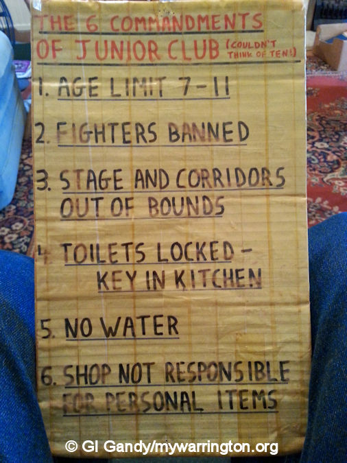My Six Commandments poster title was a bit of a joke between me and the seven-to-eleven-year-old Junior Club members when we started play activates on a Tuesday evening. The ‘no water’ one meant they had to drink their water at the counter rather than carrying it across the floor and spilling it. At least, I think that’s the reason. It might not even have been my rule.