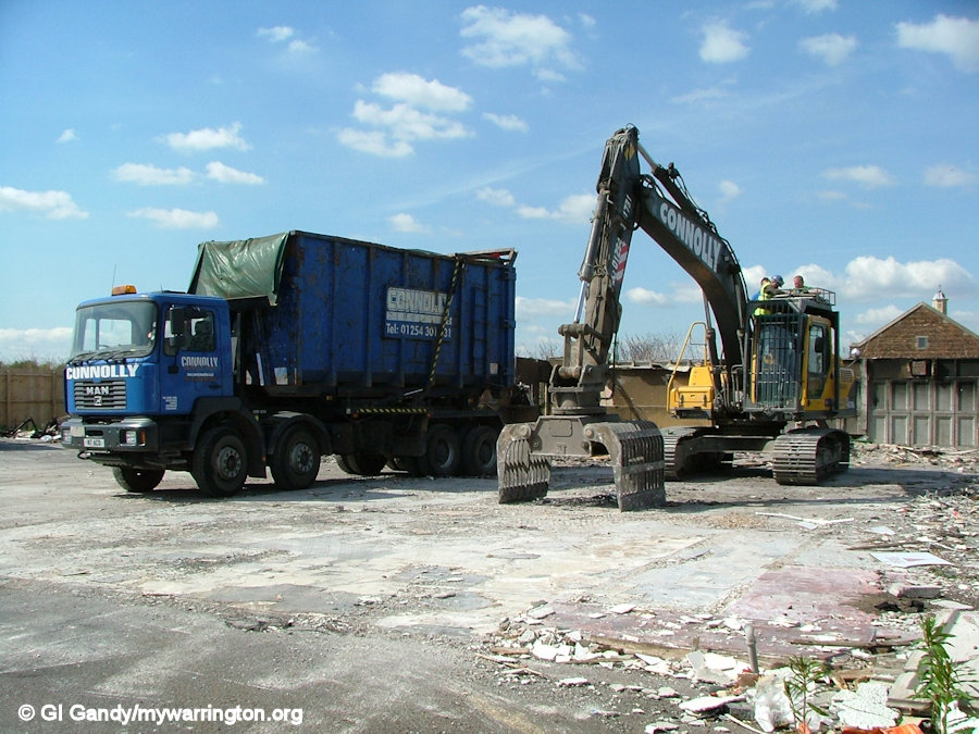 There is no pub in the Dallam area nowadays; the only one it had was Warrington Transport Club, which closed in the early 21st century before burning down. The building was demolished in May 2005. My mum worked at the Transport Club for 26 years before retiring. I still have a stool in my home which was given to mum when the club was renovated. The Warrington transport in question is the local council-owned bus company which has existed since 1902.