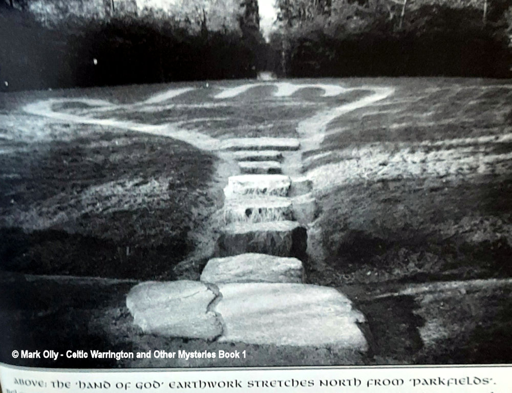 In recent times they had fallen into a state of disrepair and were tidied up in March 2012. The black and white photo shows the ‘Hand of God’ and is taken from Mark Olly’s book “Celtic Warrington and Other Mysteries” published by Churnet Valley Books. Photos taken 31 August 2007.