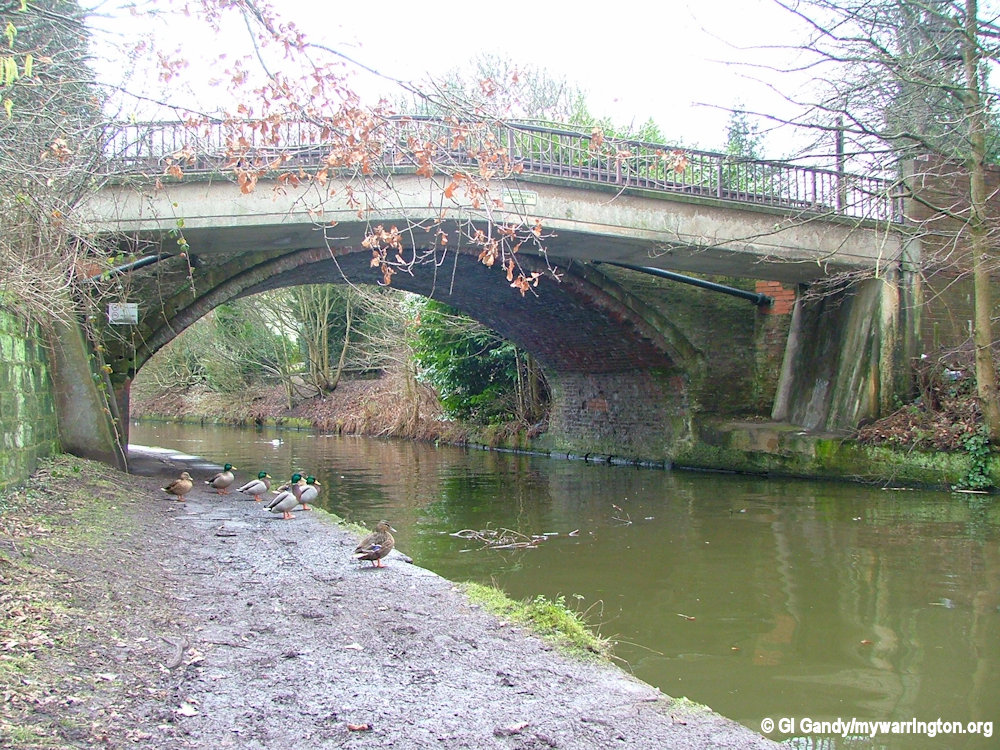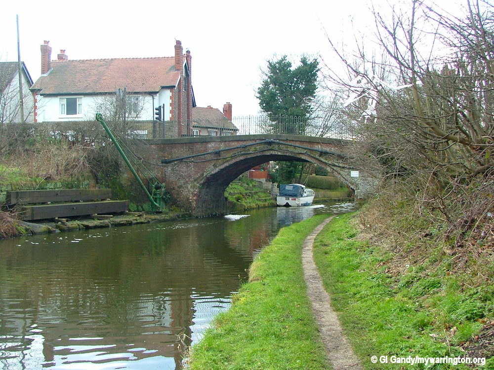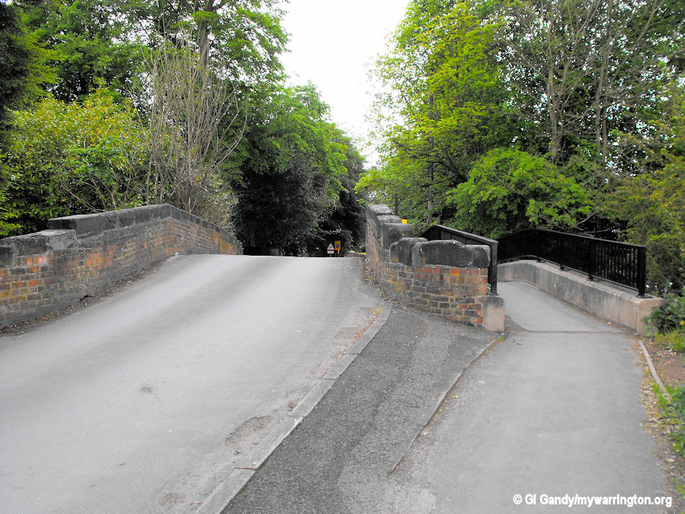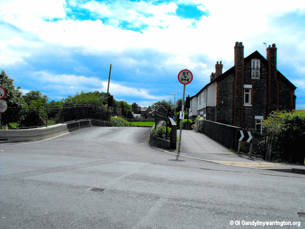 The entrance to Church Lane via Stanney Lunt Bridge over the Bridgewater Canal from the A56 Chester Road.