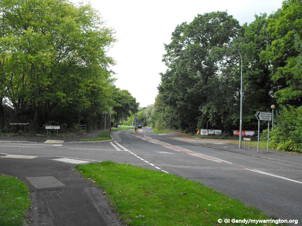 Hood Lane is now cut in two by the east-west A57 Sankey Way, with the northern section called Hood Lane North and the southern section retaining the original name of Hood Lane. Laburnum House Farm was located on Hood Lane where Crosfields Recreation Ground is today, close to Sankey Way. In 1905 there were just seven dwellings on that northern section of Hood Lane, opposite the farm entrance.
