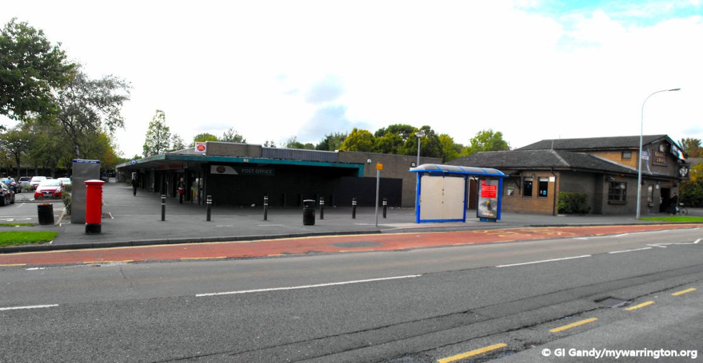 Hood Manor local centre featuring shops and the Sankey Arms pub, on 14 September 2011.