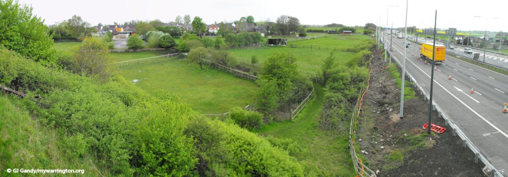 Farms in the Houghton Green on that same map include Birch Tree Farm, Whitehouse Farm and Midhops Farm alongside Midhops Plantation which is still there on the opposite side of the M6 motorway. Houghton Green Pumping Station in the north of the district is subtitled as Warrington Corporation Water Works, now the location of Cloverdell Boarding Kennels and cattery on Mill Lane.