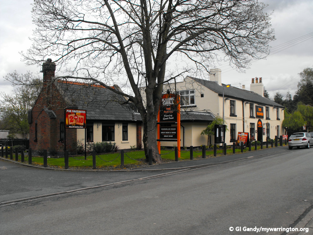 There is a pub in the village, The Plough, on Mill Lane. This dates to 1774 and is located on the original road from Liverpool to Manchester. It was a stopping point for coaches and horses. Close by was a chapel and this is remembered in the extension to the pub building, which is shaped like a chapel. There was also a well close to the pub grounds.