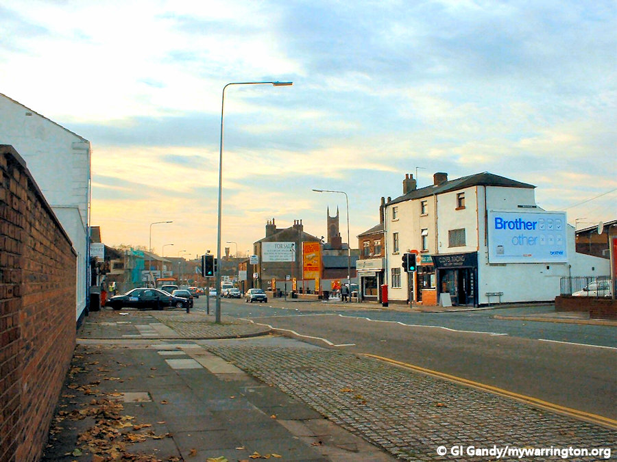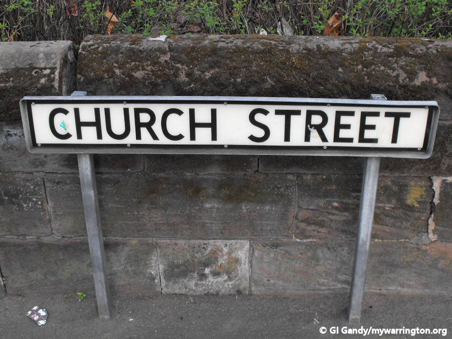 Church Street Fare 1855 from a photo in the Warrington Museum collection. We can see the National School on the far left and the Workhouse on the far right.