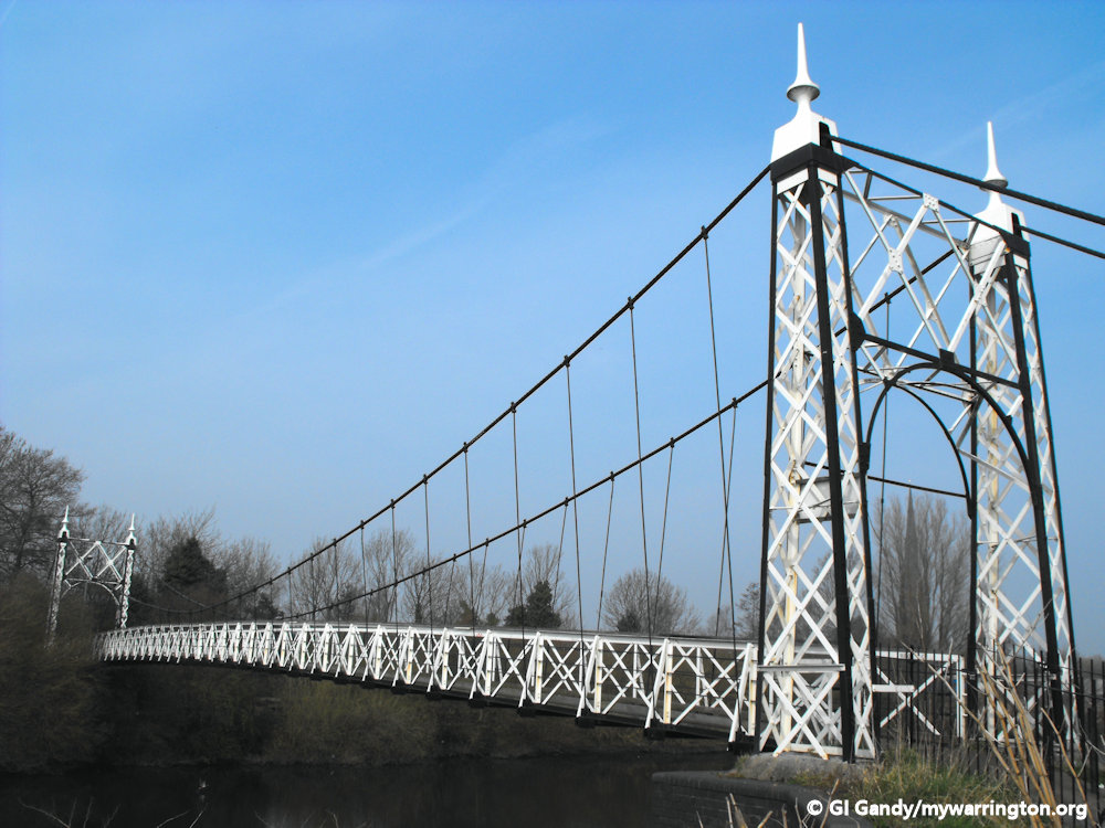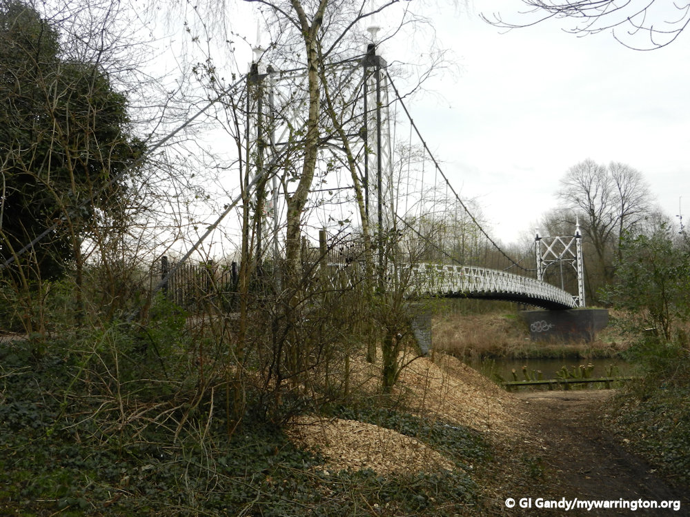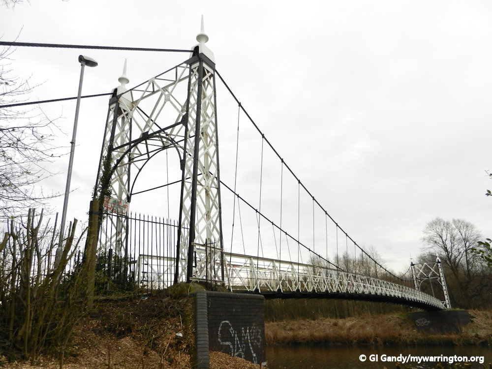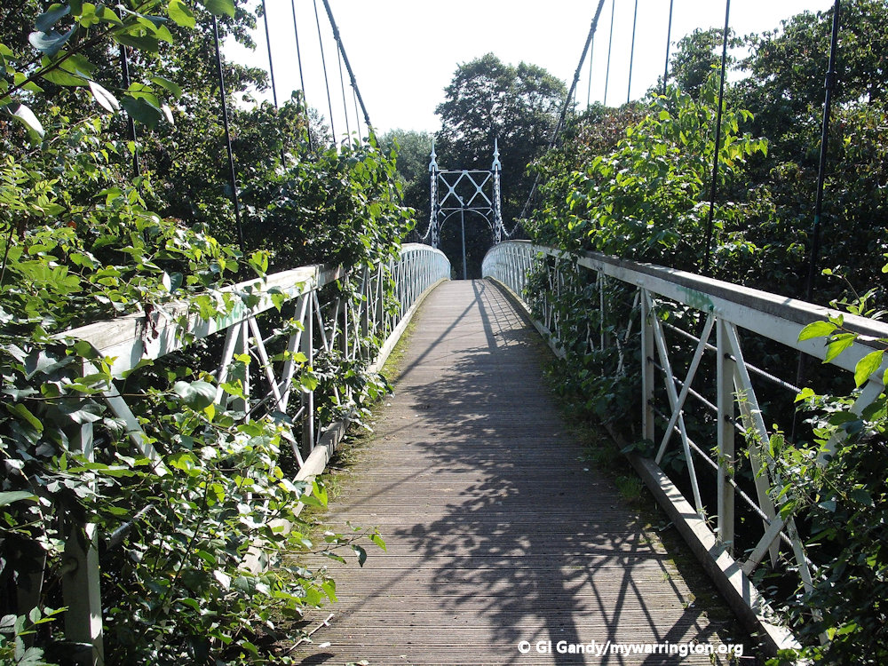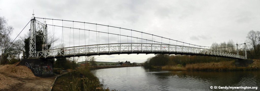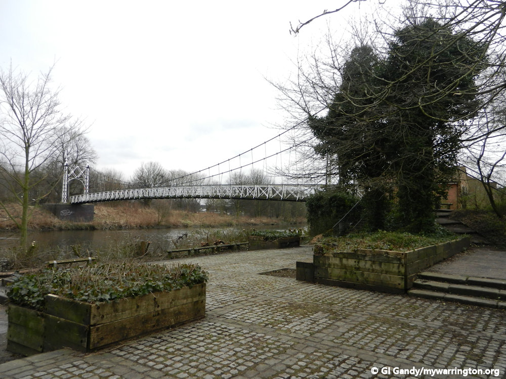 Howley Suspension Bridge was officially opened on 2 August 1912. It is a grade II listed monument (listed on 4 April 1975). Each end has two tapering square piers of open ironwork, with round arches across the pathway. It was originally meant to be 60 feet wide and 150 feet long to help with traffic congestion at Bridge Foot.