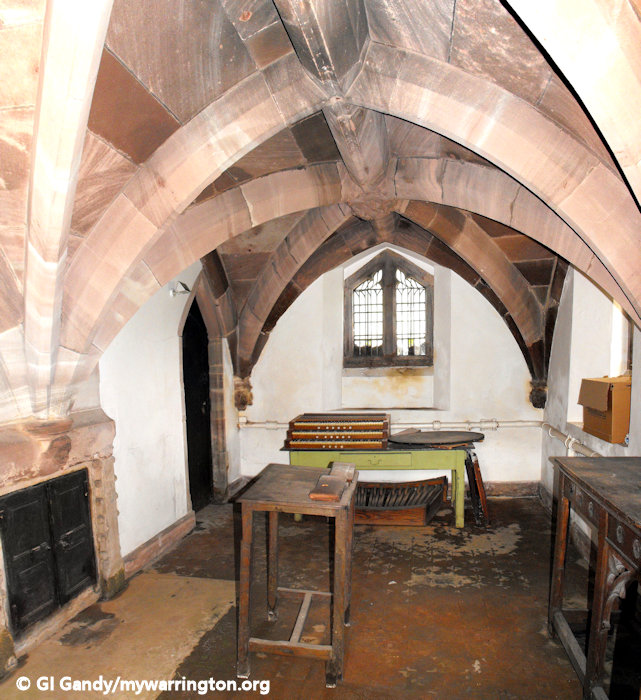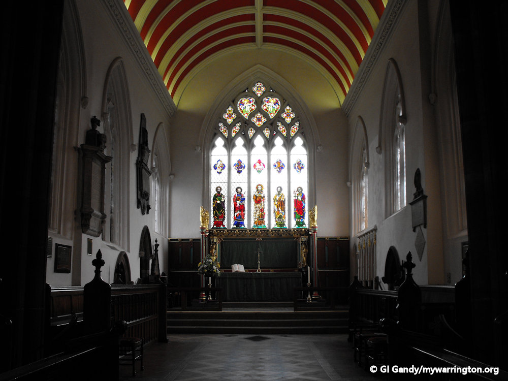 Within the church, St Ann’s Chapel was founded by Thomas Massey, rector of Warrington from 1448 to 1464. It continued to belong to the Massey family until they died out in 1748.