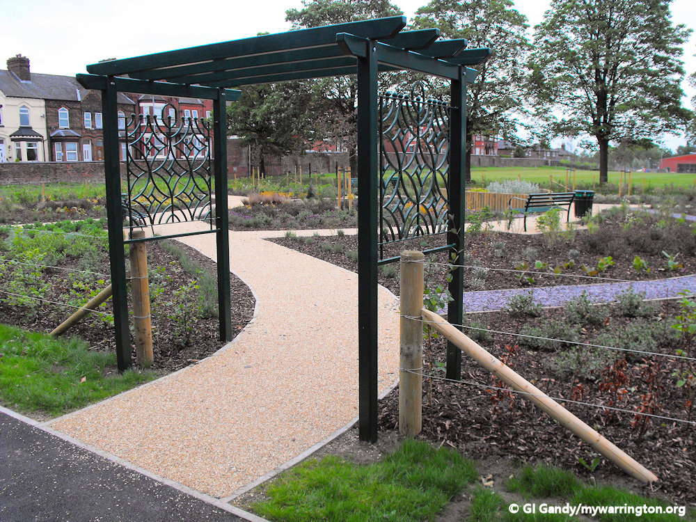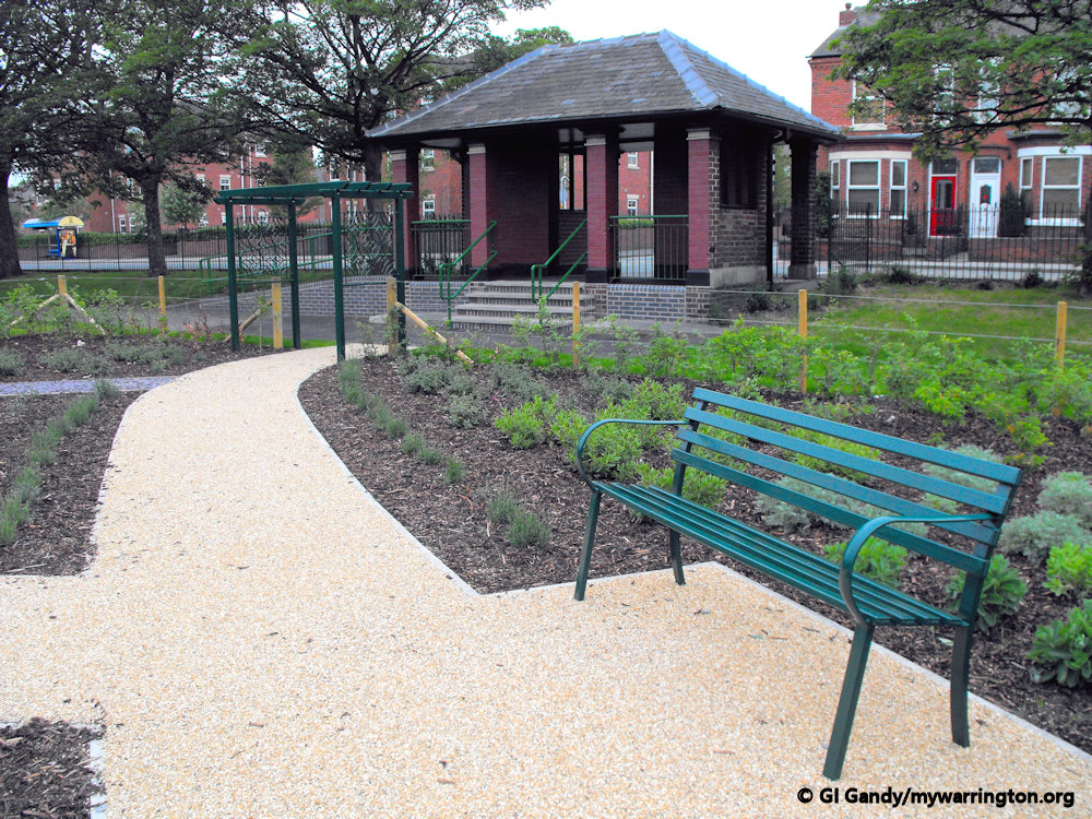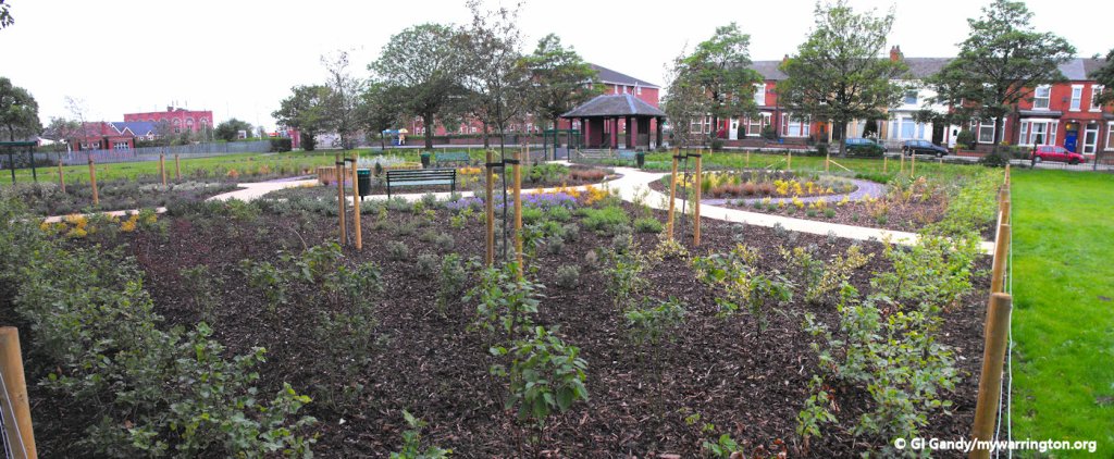 The land that became St Elphin’s Park was purchased by the council in 1907. Part of the park occupies the site of the former Clergy Daughters School. In 2011 a new community garden was created in one section of the park. An old tram stop was converted into the entrance to the garden from Manchester Road.