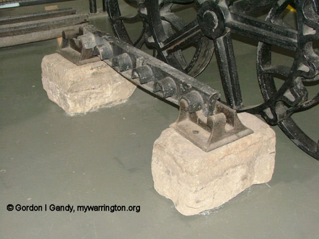 Cast iron fishbelly edge rail manufactured by Outram at the Butterley Company ironworks for the Cromford and High Peak Railway (1831). These are smooth edgerails for wheels with flanges.