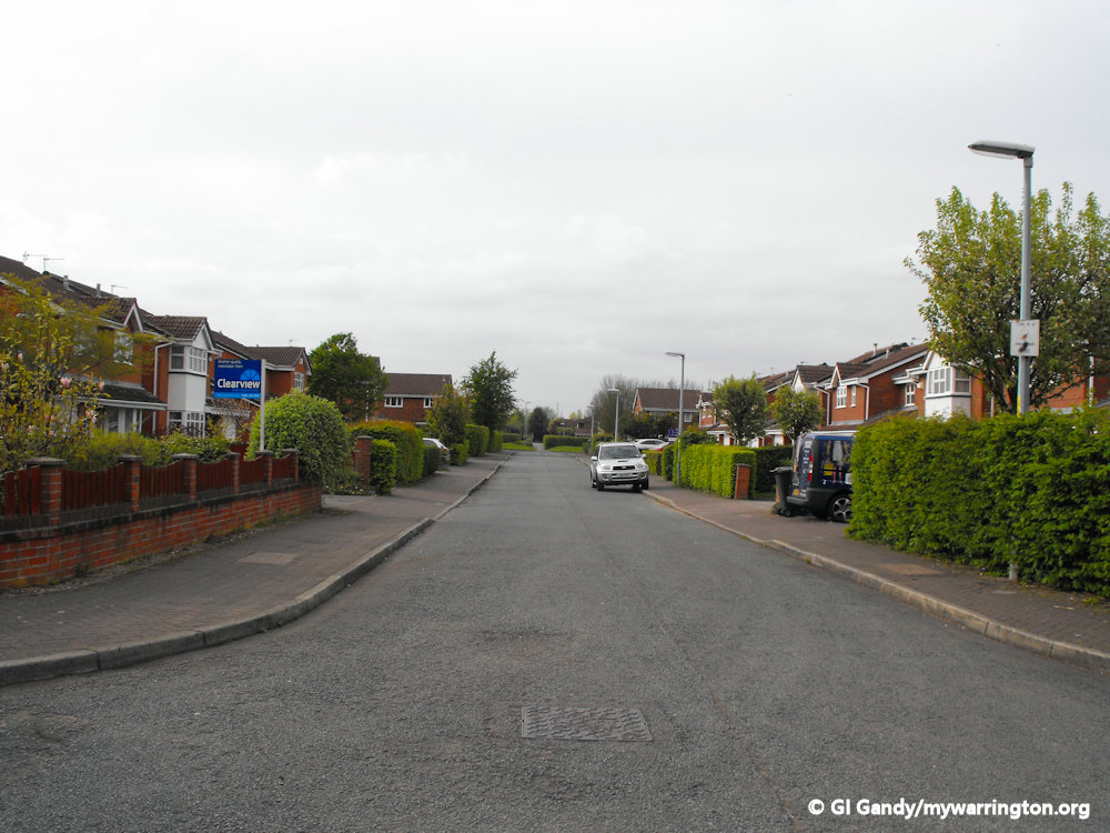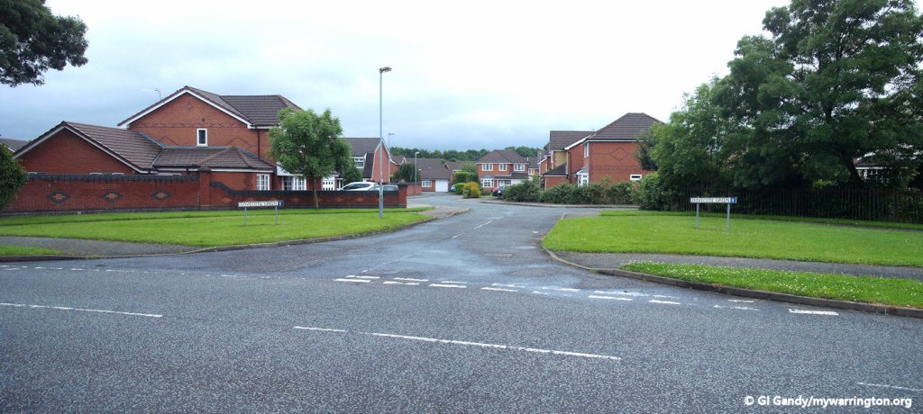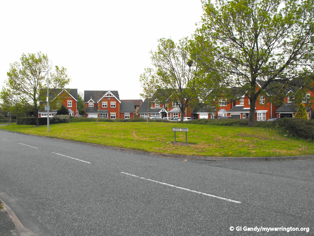Kingswood is a new district built close to Junction 8 of the M62 motorway on land that used to be occupied by Burtonwood Air Base. It is bordered by Burtonwood Road, Charon Way (leading to Gemini Retail Park), Westbrook Crescent and Westbrook Way. My photos were taken in 2012 when just a part of the district had been built.