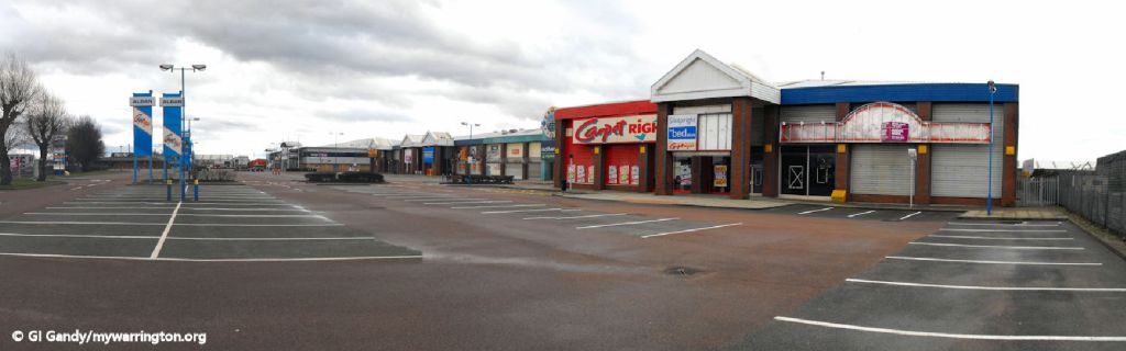 The southern section Alban Retail Park, the original name of JunctionNINE, as it looked on 7 Mar 2001, with a view towards Dallam
