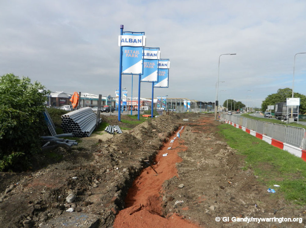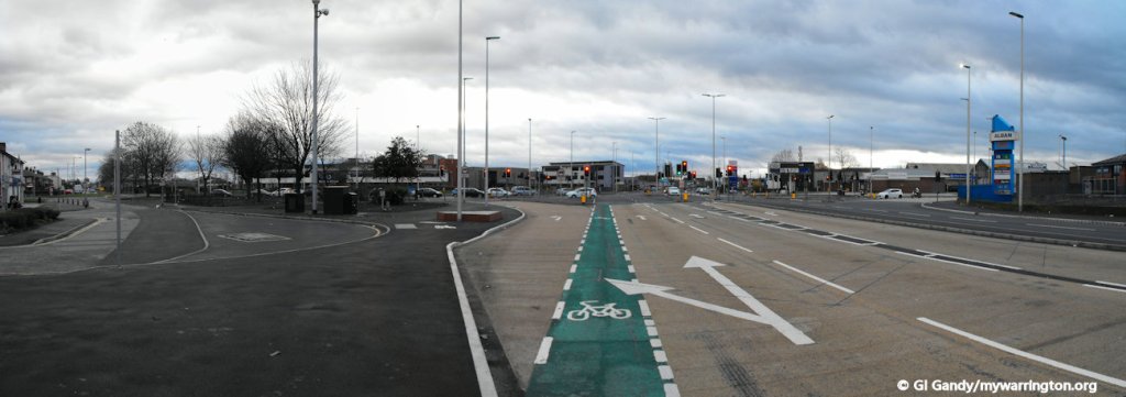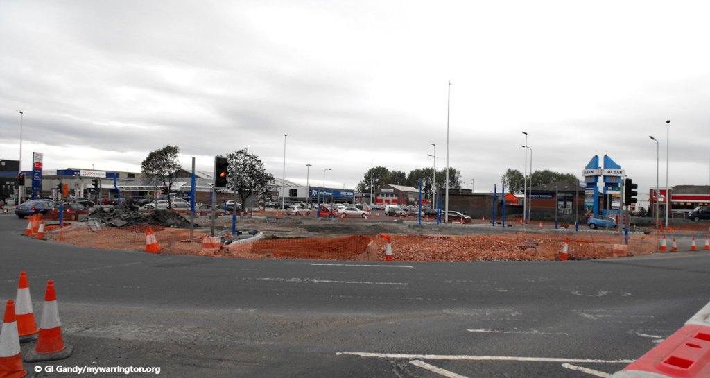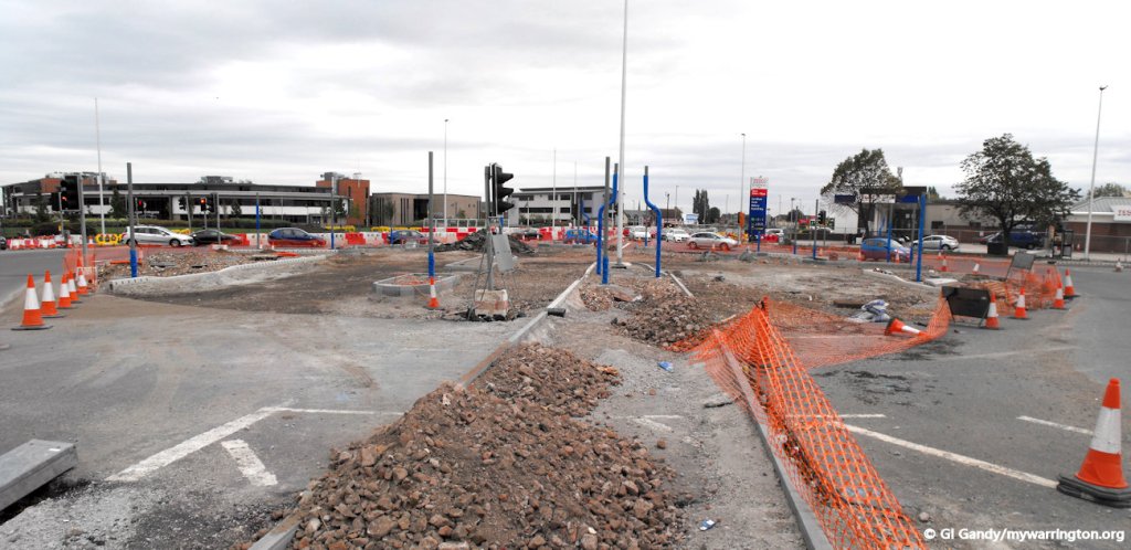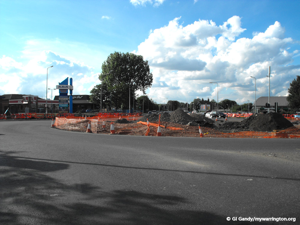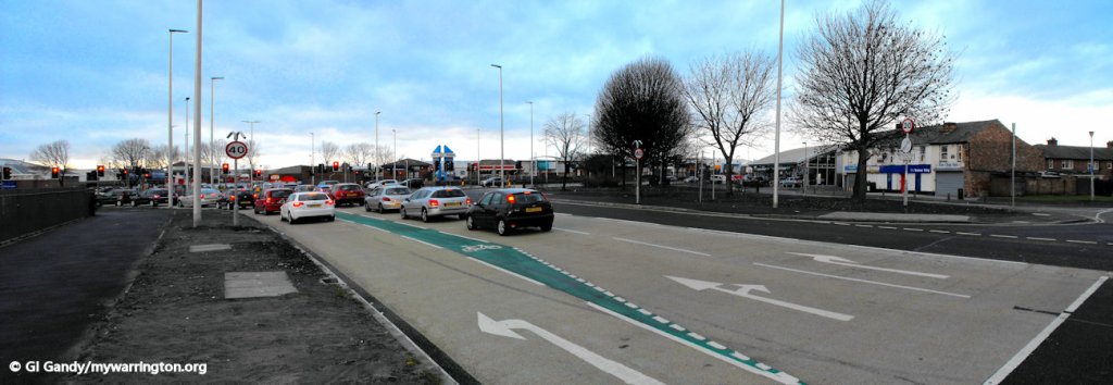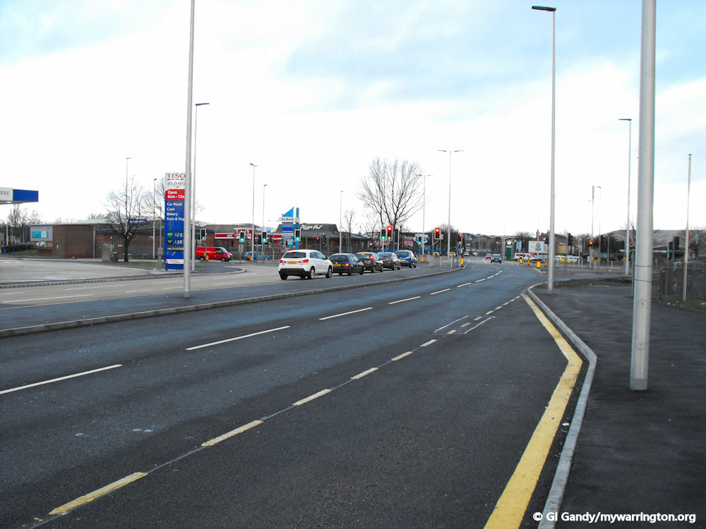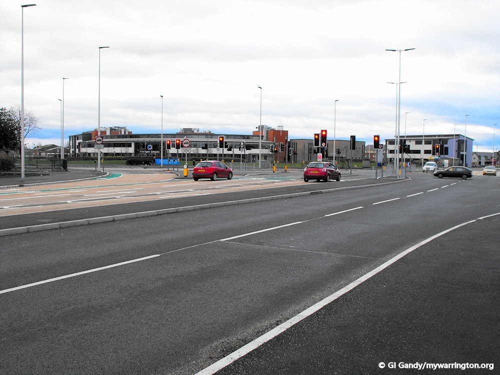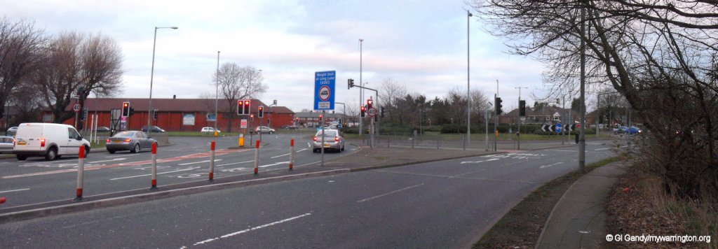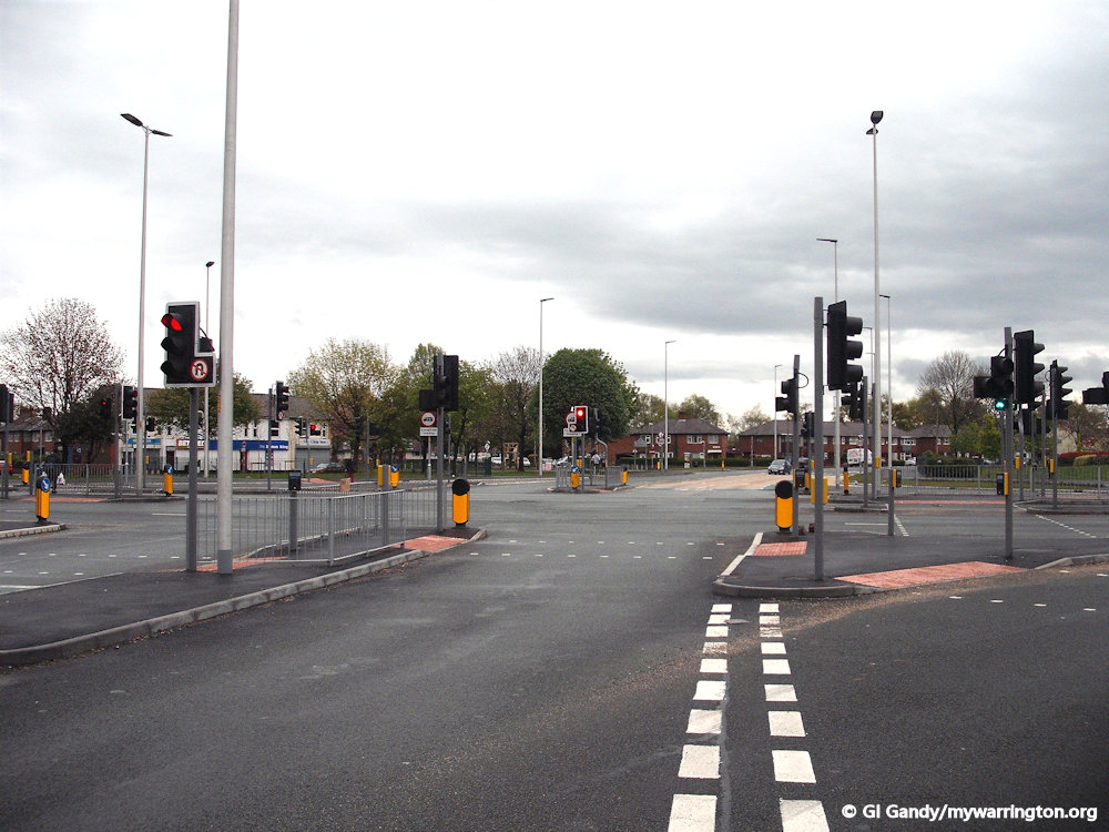 Longford Island was the roundabout junction for Hawleys Lane, Winwick Road and Long Lane when the dual carriageway was created. However, in 2011 the authorities decided to remove it and create a crossroads junction instead. Work was done during off-peak times and took seven months to complete from May 2011 to December 2011.