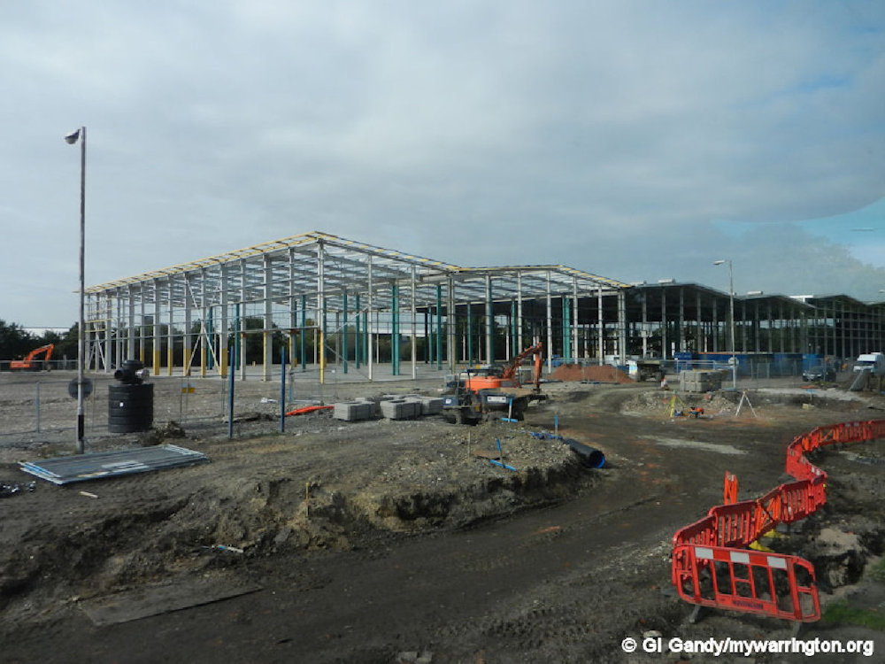 On the OS 25 inch map 1892-1914 we see what was at the same location at that time. The northern section of the area now covered by JunctionNINE retail park was called Meadowside at the beginning of the 20th century. To the east of Meadowside there was Clambrook Farm and Clambrook Cottage close to the Sandy Lane and Winwick Road junction. Clam Brook ran through the centre of Meadowside with Clambrook Bridge crossing the brook at the location of today’s Sandy Lane roundabout.