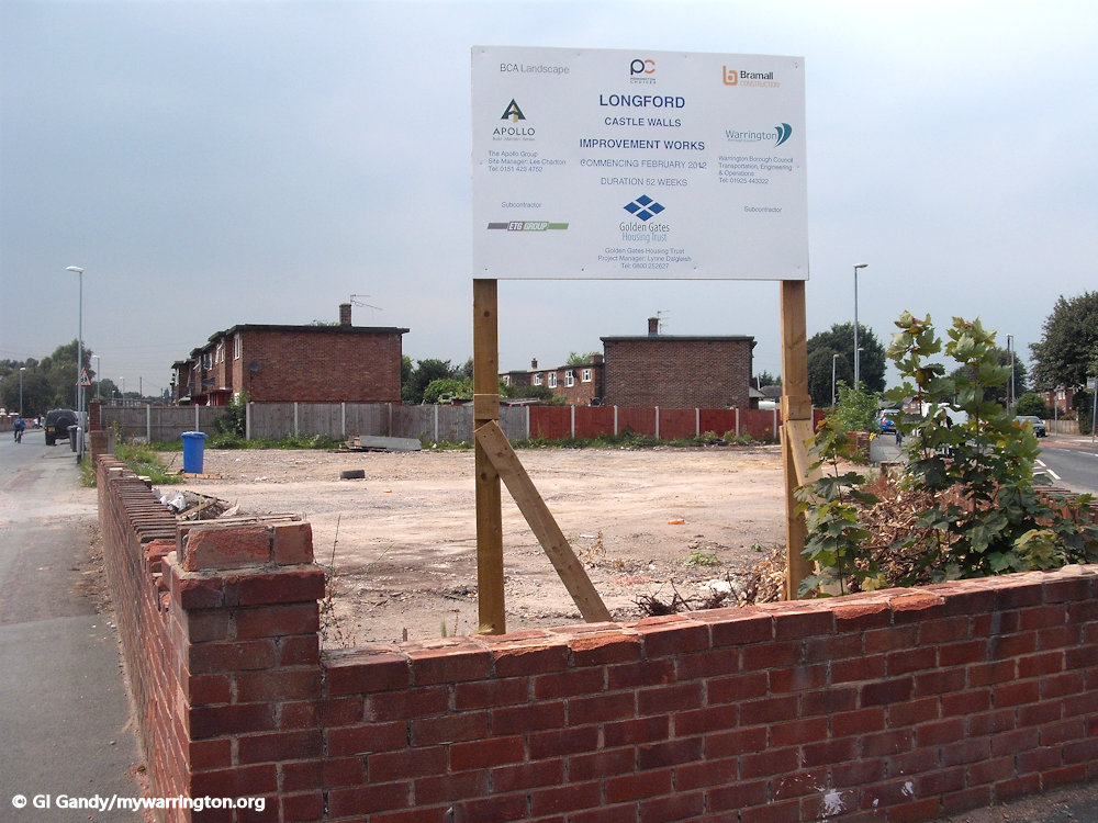 In a survey by Golden Gates Housing Trust (the owner of the former council houses) the residents of Longford were asked what improvements they would like to see in their area. One thing that came up near the top was the walls on the front of every house – the design was in the style of castle walls and the residents felt it was old fashioned and therefore not relevant to their daily living. So, in February 2012, the housing trust began the process of removing the old walls at the front of the rented properties and replacing them with modern brick walls. Houses purchased under the Right to Buy scheme were not included. The same scheme was used for the properties on Alder Lane and surrounding streets in Orford.