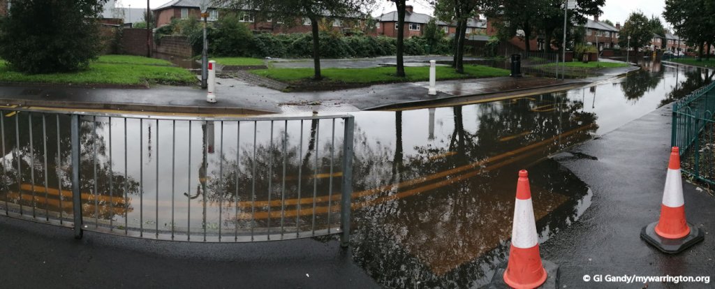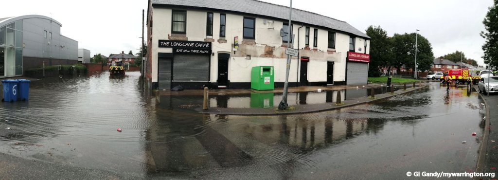 One part of the solution was to construct a new pumping station at Bewsey where the waste water from the two areas was dealt with. That decision was made after flooding in 2012, but as the images here show, this was 2019, long after the new pumping station was built. Global warming is of course always mentioned in situations such as this.